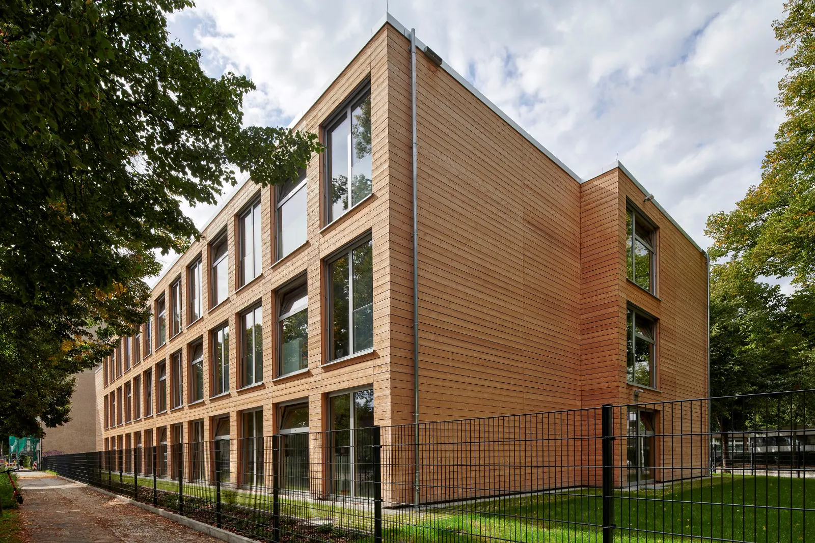 Im Rahmen des HOMEB-Programms entstehen an 32 existierenden Schulstandorten in verschiedenen Berliner Bezirken sog. Schulergänzungsbauten in modularer Holzbauweise.
